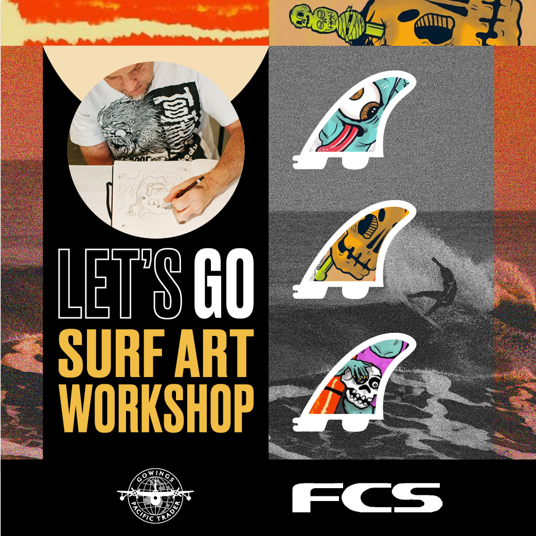 Come get creative these school holidays with an epic hands-on art workshop perfect for surf lovers and young creatives! Head to Gowings Pacific Trader and join local artist Aidan.is for a one-of a kind creative session where you’ll design and paint your very own FCS surf fin using vibrant, high-quality Surfpaints.